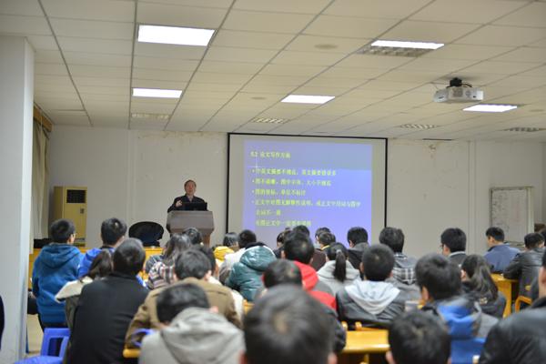 讲座开始,主持人简单介绍了研究生毕业论文的相关日程安排。接着,于盛林教授就毕业论文撰写的具体细节进行了深入的指导。从论文格式的基本要求,到论文内容的创新内涵;从学位论文的基本框架,到公式图表的符号编辑,于教授都进行了细致周到的讲解,于教授清晰的逻辑、详细的讲解、幽默的语言激发了同学们的认真思考。作为具有多年审查论文经验的老专家,于教授对审核过程中的细节及注意事项熟稔于心。最后,于教授和同学们展开深入的交流,耐心地解答同学们提出的问题。听完讲座,同学们以热烈的掌声感谢于盛林教授为大家做的精彩报告,纷纷表示会以严谨认真的态度对待研究工作,以实事求是的态度评价研究成果,将完成毕业论文看作是创作与提升的过程。