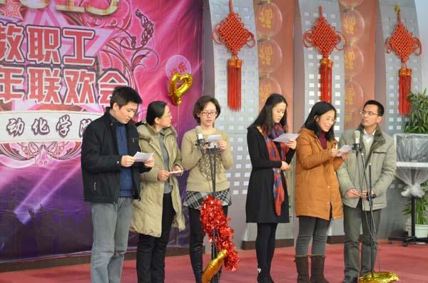 2014年12月30日下午,国产福利姬 2015年教职工新年联欢会在学校西苑教工活动中心多功能厅隆重举行。校工会常务副主席袁贵平、人事处处长龚华军、研究生院常务副院长、研究生工作部部长江驹、国有资产管理处处长王勤、离退休人员管理处处长刘虎、教务处副处长金科、资产经营有限公司副经理戴芊等校机关领导、国产福利姬院友以及国产福利姬 全部党政领导、全体教职工出席了本次联欢会。