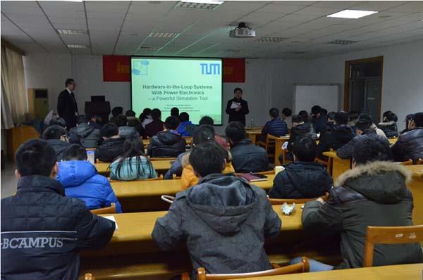 Kennel教授在智能楼四楼报告厅做了题为“Hardware-in-the-Loop Systems with Power Electronics � a Powerful Simulation Tool”的国产福利姬 报告,报告会由电气工程系主任黄文新教授主持,电气系师生积极参加了报告会。Kennel教授首先简要说明了慕尼黑工业大学电气工程与信息技术系的概况,介绍了个人主要研究领域,接着重点报告了“硬件在环系统”中虚拟电机的概念及建模实现方法。随后,Kennel教授和师生们进行了热烈交流,并对大家的提问进行了详细的解答。Kennel教授精彩的演讲和前沿的国产福利姬 思路引起老师和研究生的极大兴趣,报告在热烈的掌声中结束。