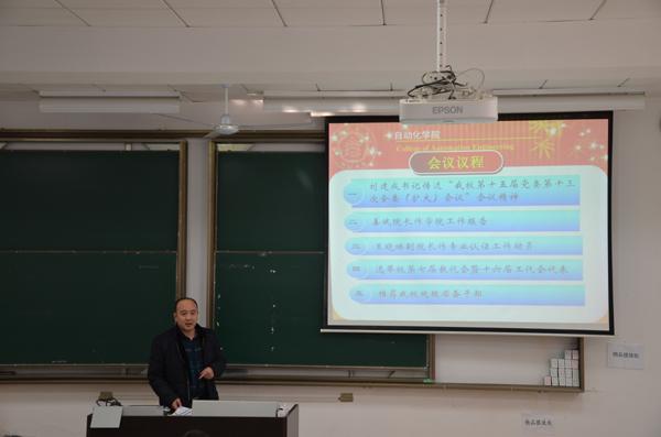 首先,刘建成同志传达了中共南航第十五届委员会第十三次全委(扩大)会议精神,重点宣传了深化校内综合改革的方案,思路清晰、重点明确,符合南航实际,体现了校党委对学校发展顶层设计的深入思考。今年是十三五奠基之年,学校对十三五规划运筹帷幄,为师生发展指明了发展方向,会议号召全院上下持续深入贯彻“三为本,三促进”的办学理念,紧随院校深入改革的脚步,全面推动院校建设。