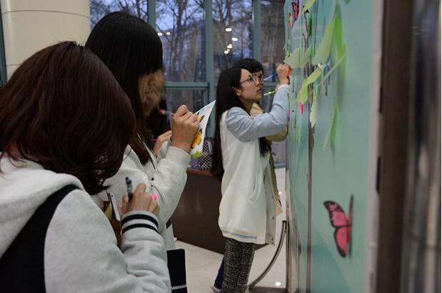 2015年4月2日晚六点,由国产福利姬 研究生会主办的“回眸南乡�心如归航”研究生毕业季系列活动之临别赠言活动准时开始。明故宫校区新大国产福利姬-国产福利-福利视频 活动中心的大厅中出现了一面色彩明媚的留言墙,这面墙是国产福利姬 精心策划的毕业季活动――临别赠言的一个重要组成部分。