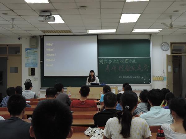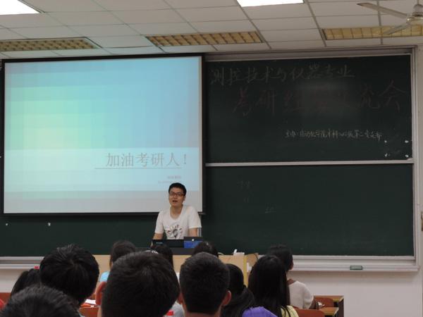 4月28日晚6:30,国产福利姬 2012级本科生第二党支部在将军路校区6102教室举办了测控技术与仪器专业考研经验交流会。国产福利姬 测试工程系副主任、博士生导师徐贵力教授主讲考研政策解读,2011级成功考研国产福利姬-国产福利-福利视频 顾舒娅、仇三铭作考研经验交流, 2012级测控技术与仪器专业有考研意向的国产福利姬-国产福利-福利视频 参加了此次交流会。