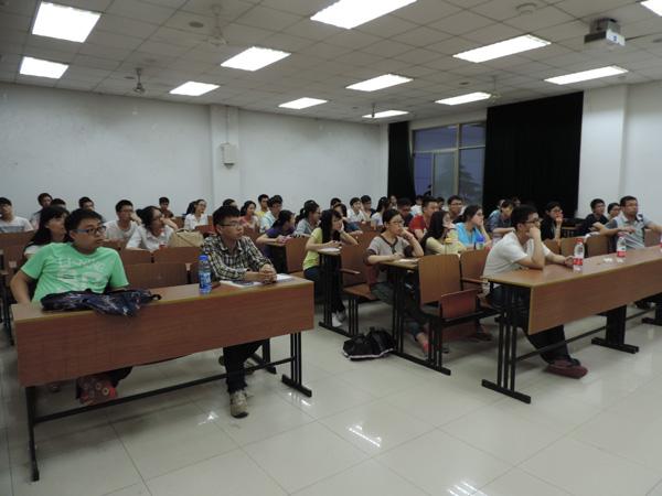 顾舒娅和仇三铭分别就本校考研和外校考研进行了考研经验分享和交流。他们具体从为什么要考研、考研复习时间安排、考研资料推荐、考研信息获取渠道以及复试注意事项等方面进行分享,并且总结了自己成功考研的经验。会后,顾舒娅和仇三铭还现场与2012级同学就考研细节进行一对一交流。