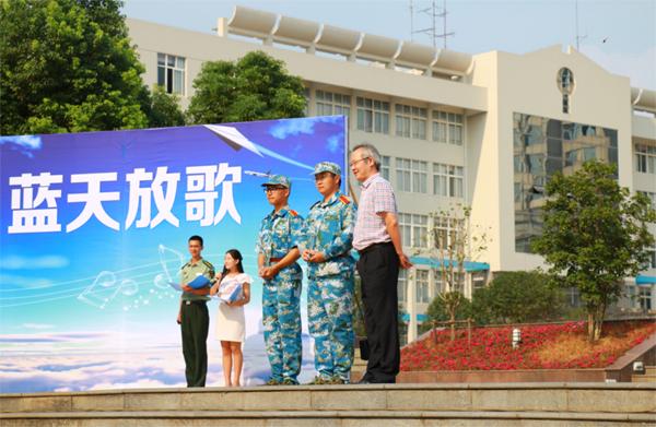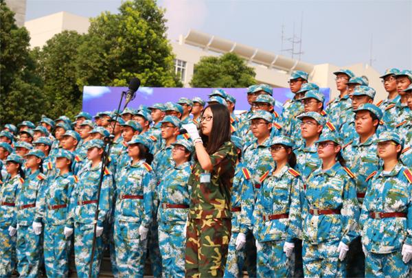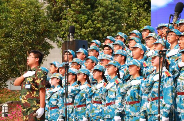 9月18日下午,将军路校区国旗广场上,国产福利姬 100名大一新生以一曲《当那一天来临》荣获“蓝天放歌”2015级新生军训赛歌会一等奖。