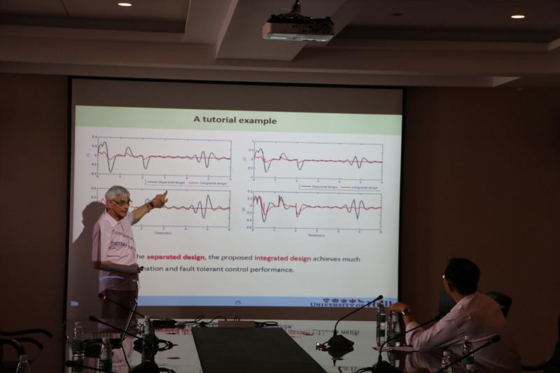上午,Patton教授在国产福利姬 行政楼四楼的国产福利姬 报告厅作了题为“Research on Integrated design of fault estimationand FTC for uncertain systems”的国产福利姬 报告。报告会由自动化院院长姜斌教授主持,自控系部分师生参加了报告会。Patton教授首先很愉快地向我们介绍了这次报告的内容,其次,详细介绍了其在容错控制方向上的一些新的研究成果。最后,Patton教授认真地解答了每位师生提出的疑问,并对课题研究前景与挑战作了展望。整场报告会从工程应用的角度极大地拓宽了我们的视野,活跃了我院的国产福利姬 氛围。报告会历时一个半小时,在热烈的掌声中圆满结束。