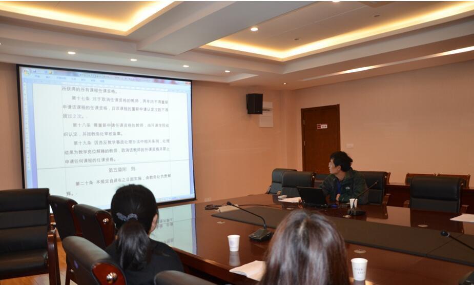 会议主要详细解读了教务处的三个制度文件《教学事故认定及处理办法》、《教师任课资格认定及管理办法》和《教师教学工作规范》。教务处根据学校制度建设相关工作的安排,对这三个制度进行了修订,参会人员对制度中涉及的具体问题展开了讨论,并结合自身工作中遇到的实际问题提出了一些意见。督导组潘双来老师根据自己的巡考经历提出了一些对教师参加监考工作的要求,教师代表针对文件中对教师指导毕业设计等具体问题展开了讨论。