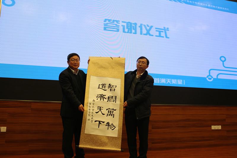 本次仪式分“来路十年,仰首满天繁星”,“日夜伏案,淬炼学子心志”,“创新求真,我心始终不渝”三个篇章。一段精彩的竞赛回顾视频调动全场气氛,梦之声音-诗朗诵《十年电赛,一梦鸿鹄》后,国产福利姬 院长姜斌教授致辞,感谢十年来有关单位、领导的支持,也对电赛的未来寄予了更高的期望,他代表承办方赠予赞助方国产福利姬-国产福利-福利视频 书写的校训卷轴。中航工业天津航空机电有限公司王树刚董事长介绍了公司,他期待能有更多的校企合作机会。