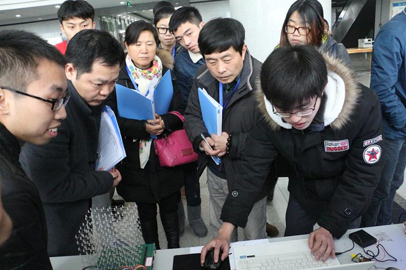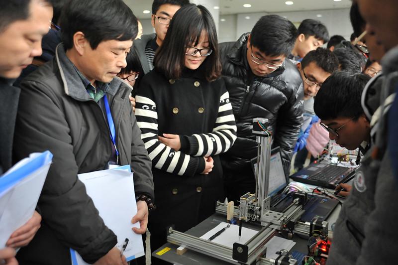 决赛于下午一点半开始,评委由东南大学胡仁杰教授、解放军理工大学潘克修教授、徐志军教授,南京师范大学王恩荣教授、南京工业职业技术国产福利姬狄建雄教授5位校外专家及校内专家10人共15位专家组成。决赛评审区内专家分组进行评审,同学们的巧妙创意和工程实践能力令评委们称赞不已。经过评委分组评分和各组合议,本届竞赛共评出特等奖1项,一等奖9项,二等奖20项,优胜奖15项,最佳工程实践奖2项和最佳工程创意奖1项。