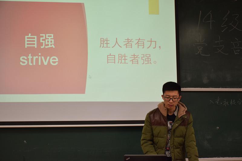 之后,会议在国产福利姬 14级党支部书记冯攻关同志的主持下,进入了自由交流的阶段。很多同志为了交流不仅认真准备了演讲稿,更是制作了精致的PPT,用图文并茂的方式向大家介绍相关的知识,发表自己的见解。三位党员同学都就“勿忘国耻,振兴祖国”这一话题和大家交流了意见,他们向大家列举了大量的历史事实,阐述了应如何以史为鉴,在当今奋发图强的观点。他们慷慨激昂的演讲赢得了在座同志的掌声。会议临近结束时,在座的一位入党积极分子就自己的看法即兴发表了演讲,他结合当今中国存在的问题,提出我们在热情建设富强中国的同时,应该注意到发展中存在的问题并时刻保持清醒。他的讲话对本次会议起到了画龙点睛的作用。