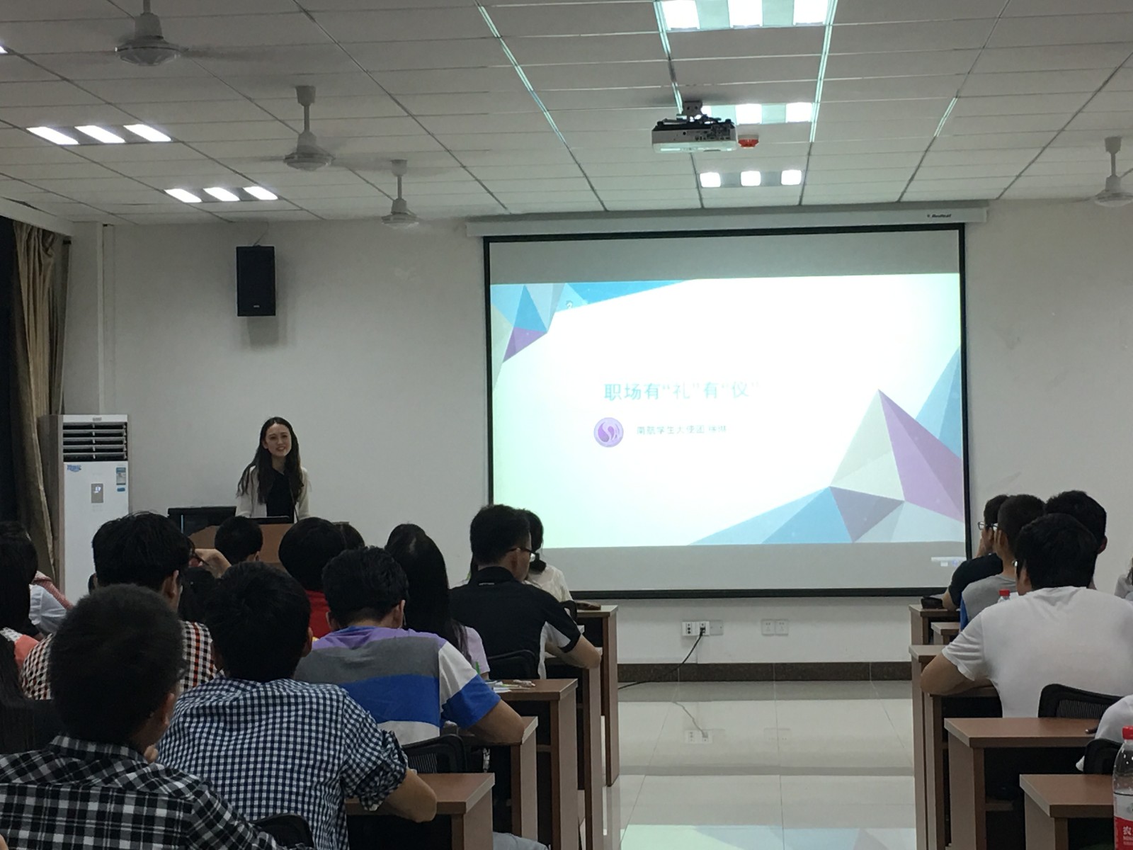5月30日晚7点,本科2013级在将军路校区国产福利姬 1号楼303报告厅举办职场礼仪培训讲座。讲座邀请了大使团礼仪队的两位同学,从面试礼仪、面试服装和化妆技巧三个方面指导2013级的同学们如何在职场中做到有“礼”有“仪”。