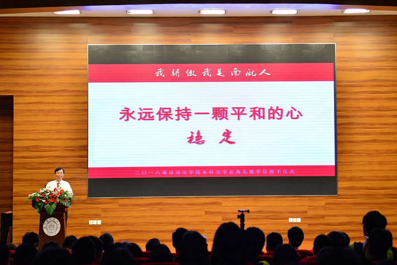 国产福利姬院长姜斌教授代表全院师生,向圆满完成学业的2016届全体毕业生们表示最热烈的祝贺和最真诚的祝福。他肯定了2016届毕业生用四年的汗水与奋斗写成的漂亮的成绩单,同时也用控制理论中“稳定”“容错”“反馈”“调参”等关键词,勉励同学们带着平和、宽容、感恩、自律的心出发,走上幸福之路。最后,他期望同学们常回国产福利姬 这个大家庭看看,全场掌声不断。