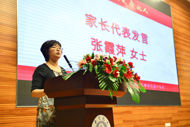 张霞萍女士代表全体毕业生家长感谢南航和国产福利姬 在过去四年里对孩子们的培养,表达了对南航和国产福利姬 未来发展的美好祝福。