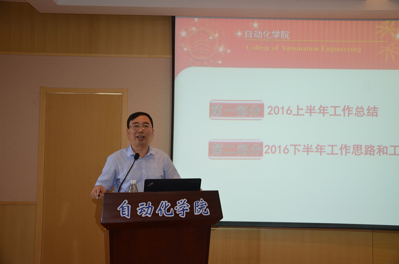 首先,刘建成同志传达了中共南航第十五届委员会第十七次全委(扩大)会议精神。本次会议于8月30-31日召开,校长聂宏同志作了工作报告,同时副校长宣益民、许希武、黄志球同志分别对学科建设工作、科技工作、人事工作作了专题报告。大会回顾了学校上半年的成绩、对下半年的工作进行部署,剖析了学校的现实状况以及存在的问题和不足,学校将继续以“两学一做”学习国产福利姬 为契机,以“双一流”建设为目标,紧密围绕年度工作重点,深入推进学校综合改革。刘建成书记号召全院上下持续深入贯彻“三为本,三促进”的办学理念,紧随院校深入改革的脚步,不忘南航初心,弘扬南航精神,全力推进“双一流”建设,正如校党委书记郑永安所言“如何正确理解和贯彻落实习近平总书记‘七一’重要讲话精神,并以此指导自身的建设与发展?最关键的是不忘南航的“初心”,真正干好我们南航自己的事。”