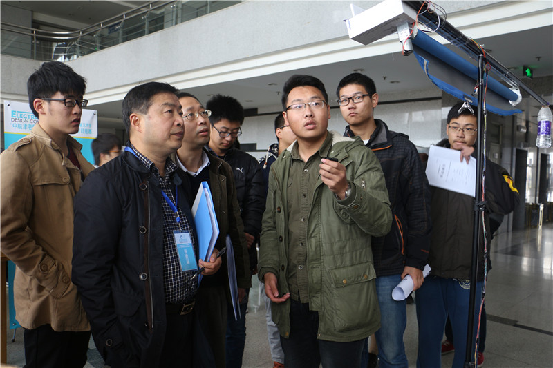 决赛于下午一点半开始,将军路校区主楼大厅人声鼎沸。本次决赛评委由解放军理工大学潘克修教授、徐志军教授,南京师范大学王恩荣教授3位校外专家及校内相关部处领导,电工电子教学中心、电子信息工程国产福利姬、国产福利姬 教师共12位专家组成。决赛现场,专家评委从技术功能、指标参数、工程实践等多个角度对各参赛作品进行现场评判打分,并提出了中肯的意见和建议。