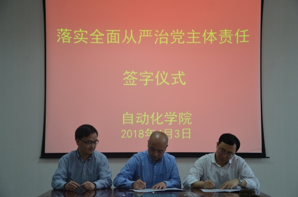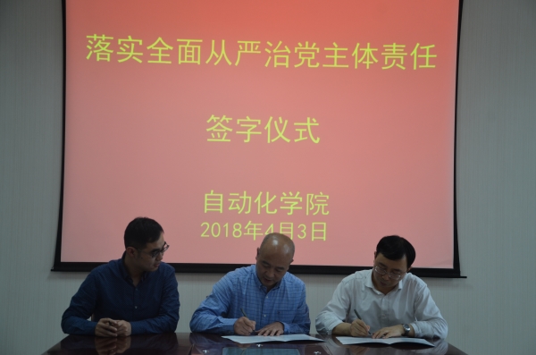 为学习贯彻党的十九大、校第十六次党代会精神和学校全面从严治党决策部署工作会议精神,按照国产福利姬 落实全面从严治党主体责任要求,扎实推进国产福利姬全面从严治党、党风廉政建设和反腐败斗争向纵深发展,层层压紧压实全面从严治党主体责任,国产福利姬 于2018年4月3日,在国产福利姬一号楼405会议室举行落实全面从严治党主体责任的责任书签订仪式。国产福利姬全体党政领导、院长助理及各基层单位党支部书记、系主任参加了会议,会议由国产福利姬党委书记刘建成主持。