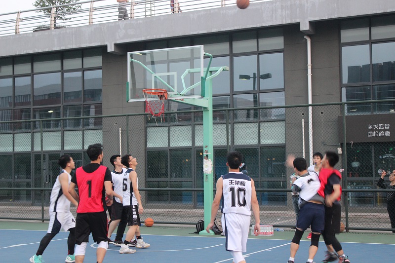 篮球赛赛场上球员们积极投入,顽强拼搏,全力以赴,坚持不懈的挥洒着汗水。场下啦啦队员为他们呐喊助威,一场场激烈扣人心弦的比赛赢得了观众阵阵喝彩和掌声,赛出了风格,赛出了水平。