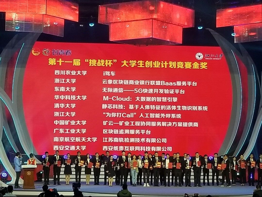 10月31日至11月3日,2018年“创青春” 浙大双创杯全国大国产福利姬-国产福利-福利视频 创业大赛终审决赛在浙江大学举行,主题为“弄潮创青春,建功新时代”。大赛下设3项主体赛事:创业计划竞赛、创业实践挑战赛和公益创业赛。经过激烈角逐,我院由徐强和王平老师指导的“江苏南轨检测技术有限公司”项目荣获赛事最高奖项——金奖!