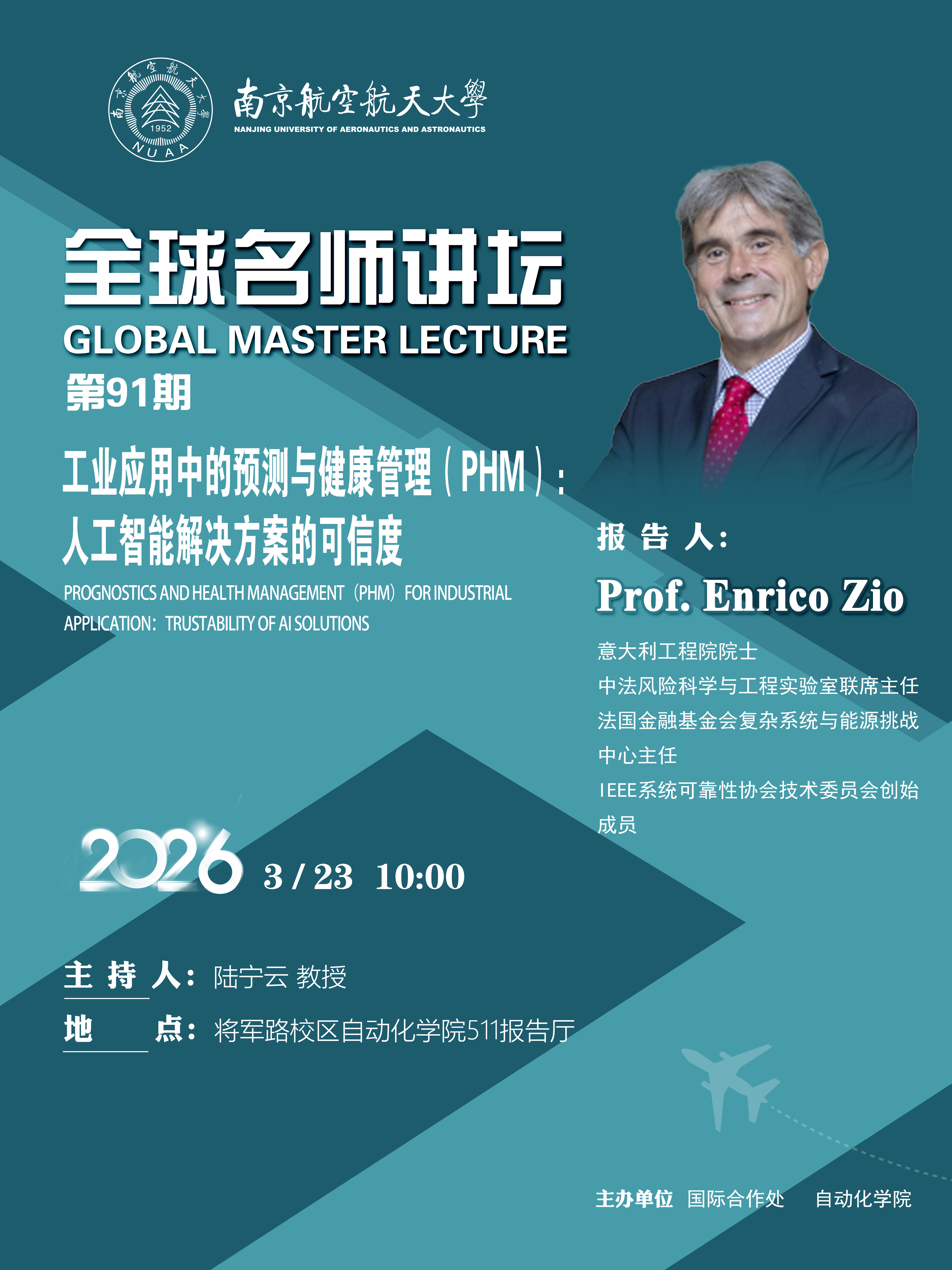 【全球名师讲坛·第91期】Prof. Enrico Zio:工业应用中的预测与健康管理(PHM):人工智能解决方案的可信度